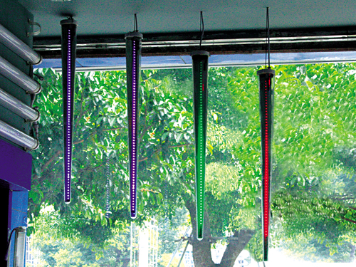 The LED Meteor Rain Light uses high quality PVC circuit boards, high intensity bulbs and acrylic tube. Every LED bulb turns on and turns off one by one in sequence, simulating the meteor rain. Their lighting effect looks like meteor shower, bright and smooth. They're applying to buildings, shopping malls, bars, salon or other places. Best tree decoration of the year.